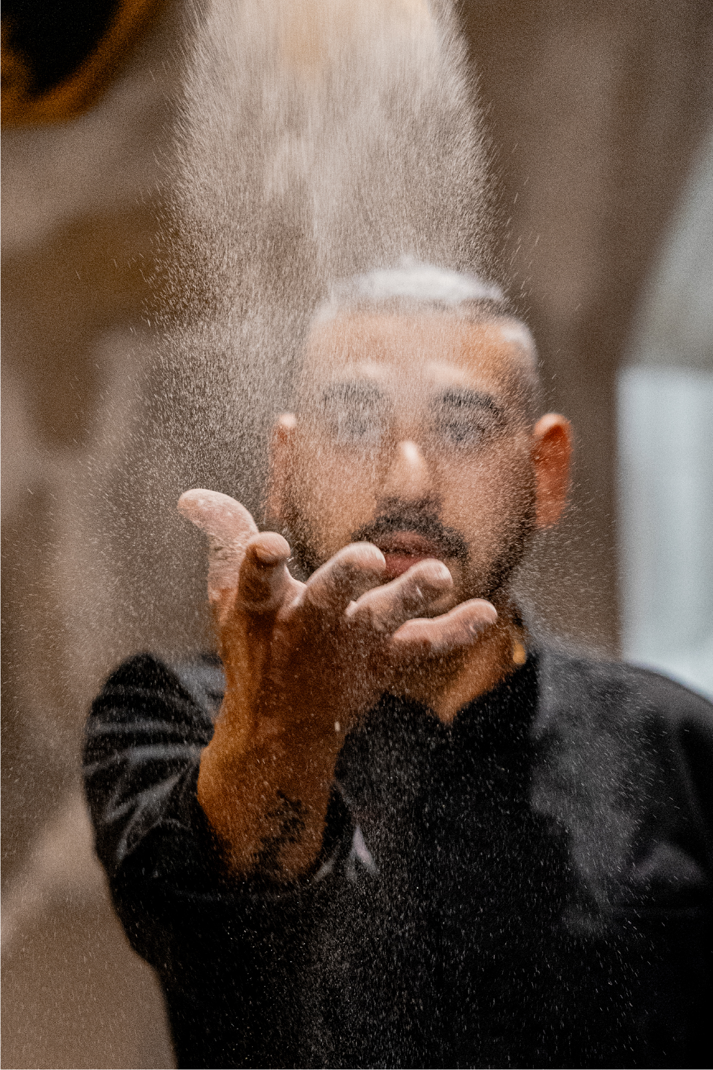 PIZZÀ è il suo spazio di ricerca,dove la pizza diventa linguaggio personale e ogni impasto un’opera in evoluzione.